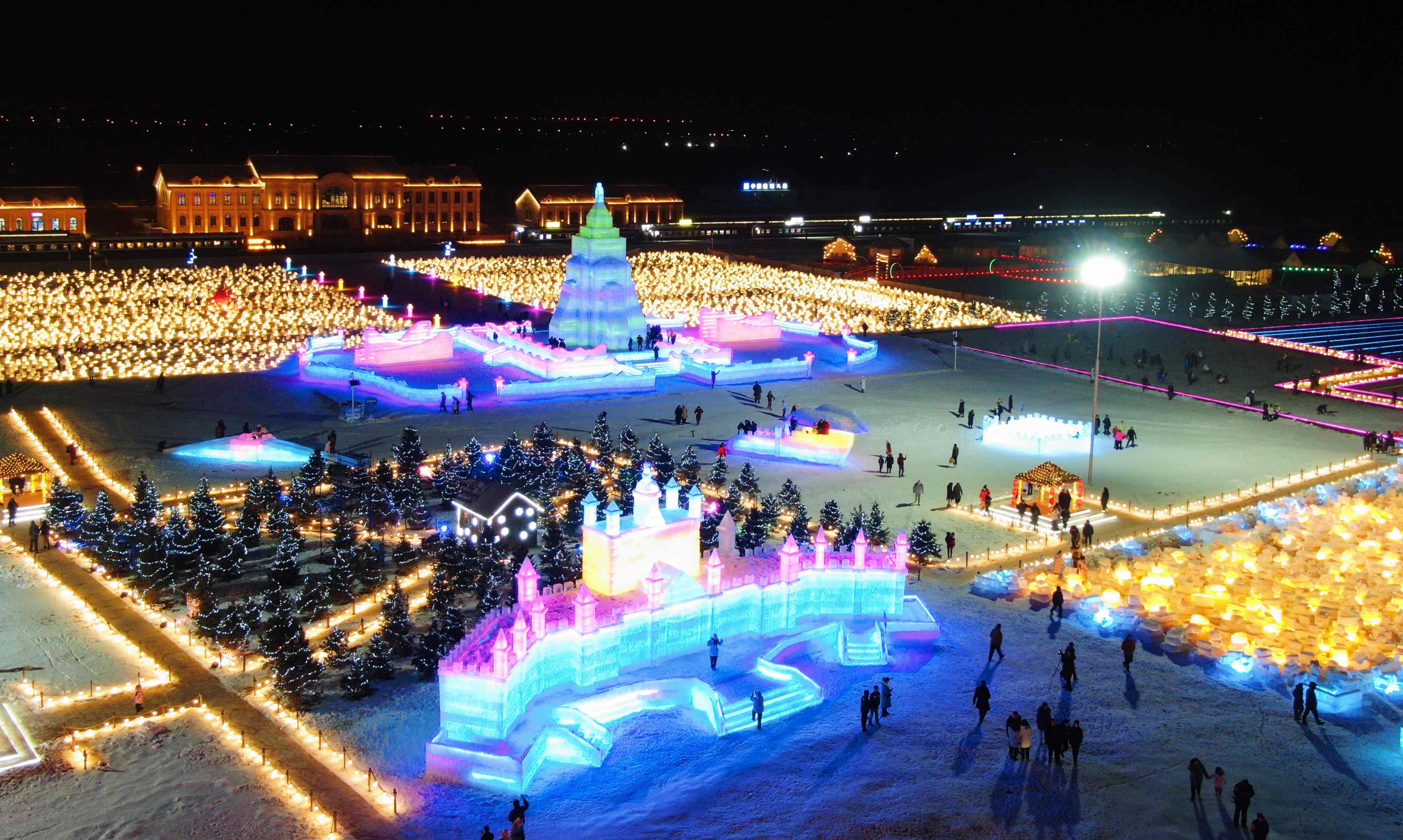 第四屆冰雪節(jié)以“歌游內(nèi)蒙古·冰雪悅青城”為主題,總用冰量約10000立方米,設(shè)置主題冰建、冰雪娛樂(lè)和民族特色體驗(yàn)互動(dòng)三大區(qū)域。